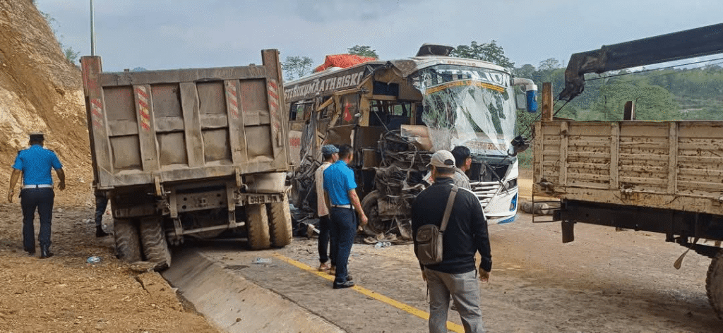 बस र टिप्पर आपसमा ठोक्किँदा ७ जना घाइते