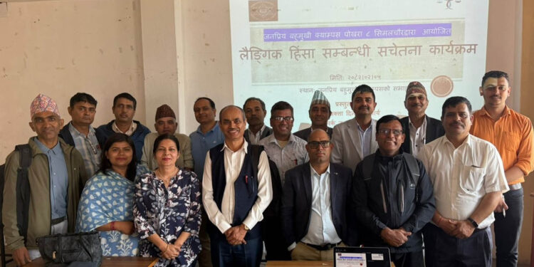 पोखरा । जनप्रिय बहुमुखी क्याम्पस पोखराको आयोजनामा लैङ्गिक हिंसा विरुद्ध सचेतनासम्बन्धी अभिमुखीकरण कार्यक्रम सोमबार क्याम्पसको सभाहलमा सम्पन्न भएको छ । क्याम्पस सञ्चालक समिति अध्यक्ष वीरेन्द्रनारायण विजुक्छेले कार्यस्थलमा हुने लैङ्गिक हिंसा व्यक्त नगर्दा मानसिक पीडा सिर्जना हुने हुँदा परिवार र समाजलाई गम्भीर असर पर्ने भएकाले हिंसाका विरुद्ध सशक्त आवाज उठाएर कानुनी उपचार खोज्न सुझाए । क्याम्पस […]