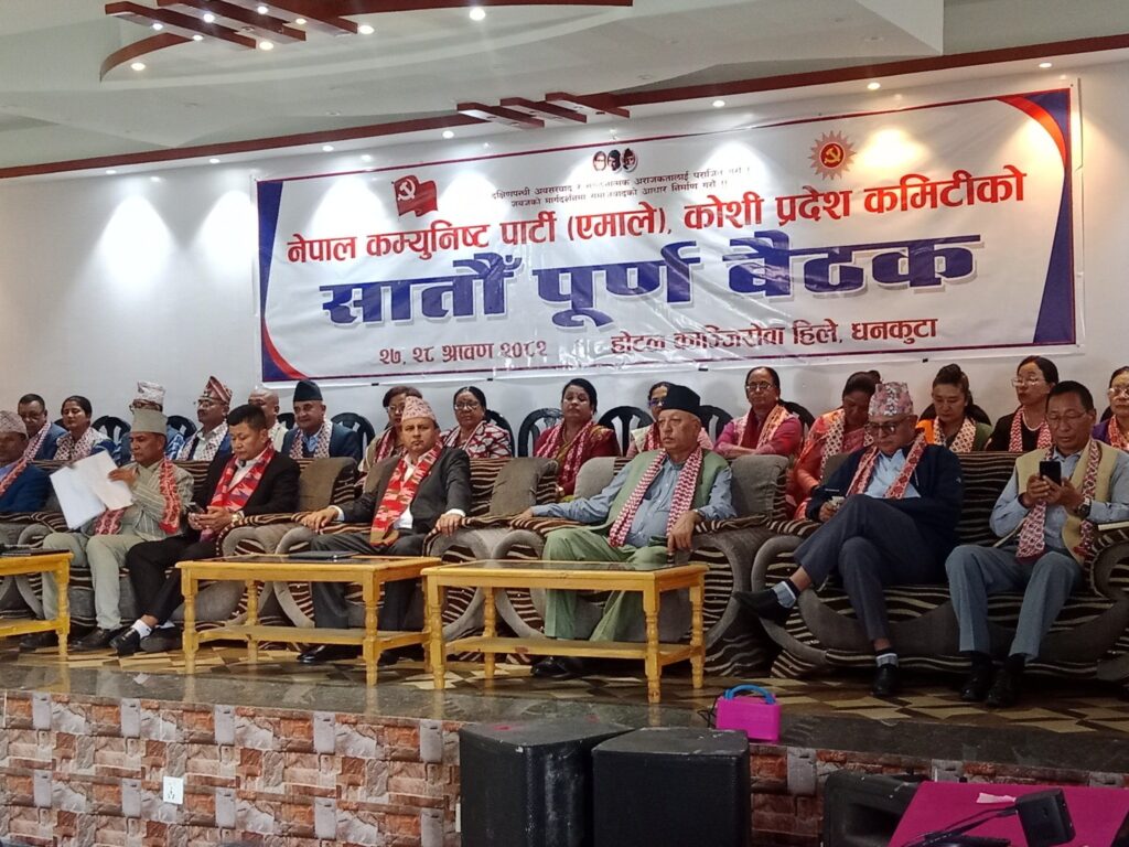 विराटनगर । नेपाल कम्युनिस्ट पार्टी (एमाले) कोशी प्रदेश समितिको बैठक केही विवाद र भनाभनका बिच सम्पन्न भएको छ । बैठक सहभागी कतिपयले पार्टीको केन्द्रीय समिति बैठकले पठाएको अन्तरपार्टी निर्देशन (अपानि)को ६ नम्बर बुँदा सच्याउनु पर्ने माग गरेका थिए । उनीहरूले यस्तो माग गरेपछि धनकुटा बैठकमा होहल्ला र तमासाको स्थिति भएको एक नेताले बताए । बैठकमा प्रदेश […]