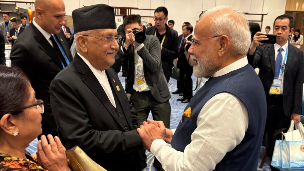 प्रधानमन्त्री ओली र मोदीबीच चीनमा भेटवार्ता