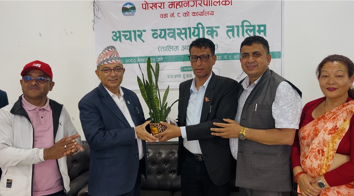 पोखरा महानगरपालिका वडा नं ८ मा तीनदिने अचार बनाउने तालिम सम्पन्न भएको छ। स्थानीयस्तरमा सीप विकास र आत्मनिर्भरता अभिवृद्धिको लक्ष्यसहित आयोजित तालिम वडा अध्यक्ष रूद्रनाथ बरालको संयोजनमा सम्पन्न भएको हो।