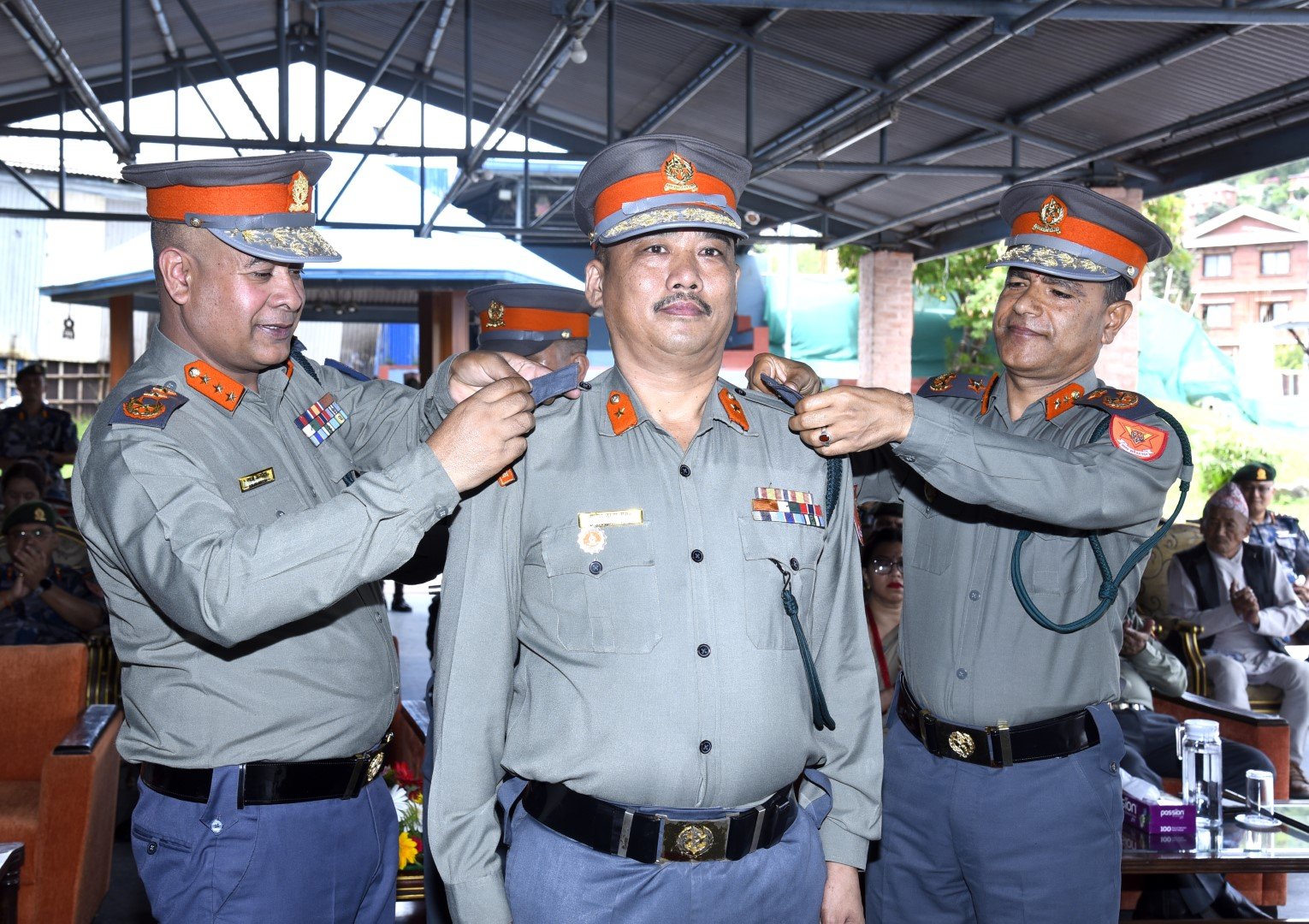सशस्त्र प्रहरी बलका महानिरीक्षक राजु अर्यालले सशस्त्र प्रहरी अतिरिक्त महानिरीक्षक पदमा बढुवा भएका गणेश बहादुर ठाडा मगरलाई दर्ज्यानी चिह्न प्रदान गरेका छन् ।