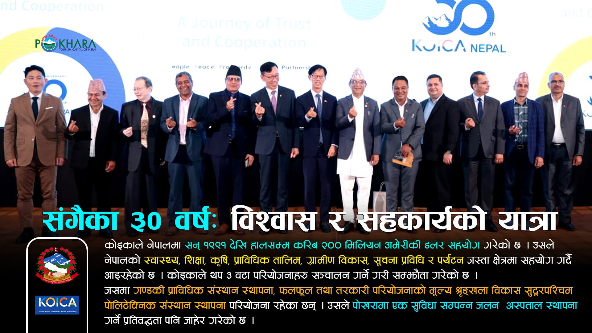 कोइकाले नेपालमा आफ्नो विकास साझेदारीको ३० वर्ष पूरा गरेको अवसरमा आयोजित “सँगैका ३० वर्ष: विश्वास र सहकार्यको यात्रा” नामक विशेष समारोहमा उक्त घोषणा गरिएको हो । कार्यक्रमका प्रमुख अतिथि समेत रहनुभएका मेयर आचार्यले विकास साझेदार र एक असल मित्रका रूपमा कोइकाले नेपालको समग्र विकासमा पुर्याएको योगदानको सराहना गर्नुभयो ।