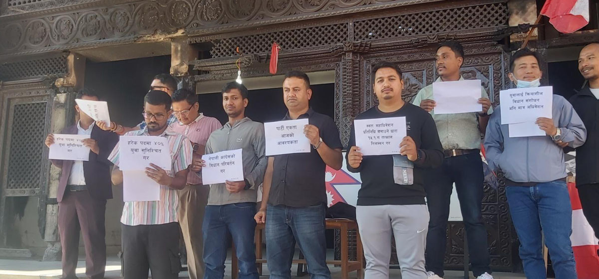 युवाहरूले सबै तहका निर्वाचनमा कम्तीमा पनि ४० प्रतिशत युवालाई पार्टीको उम्मेदवारका रूपमा अगाडि बढाउनुपर्ने व्यवस्था विधानमा नै उल्लेख गराउन, पार्टीका विभिन्न तहका समितिमा आउन हाल रहेका प्रतिबन्धात्मक व्यवस्था निलम्बन गर्न, पार्टीमा मनोनित र प्रतिनिधित्व गरिने पदहरूमा समावेशितालाई ध्यानमा राखी ४० प्रतिशत युवाको प्रतिनिधित्व सुनिश्चित गराउन ध्यानाकर्षण गराएका छन्।