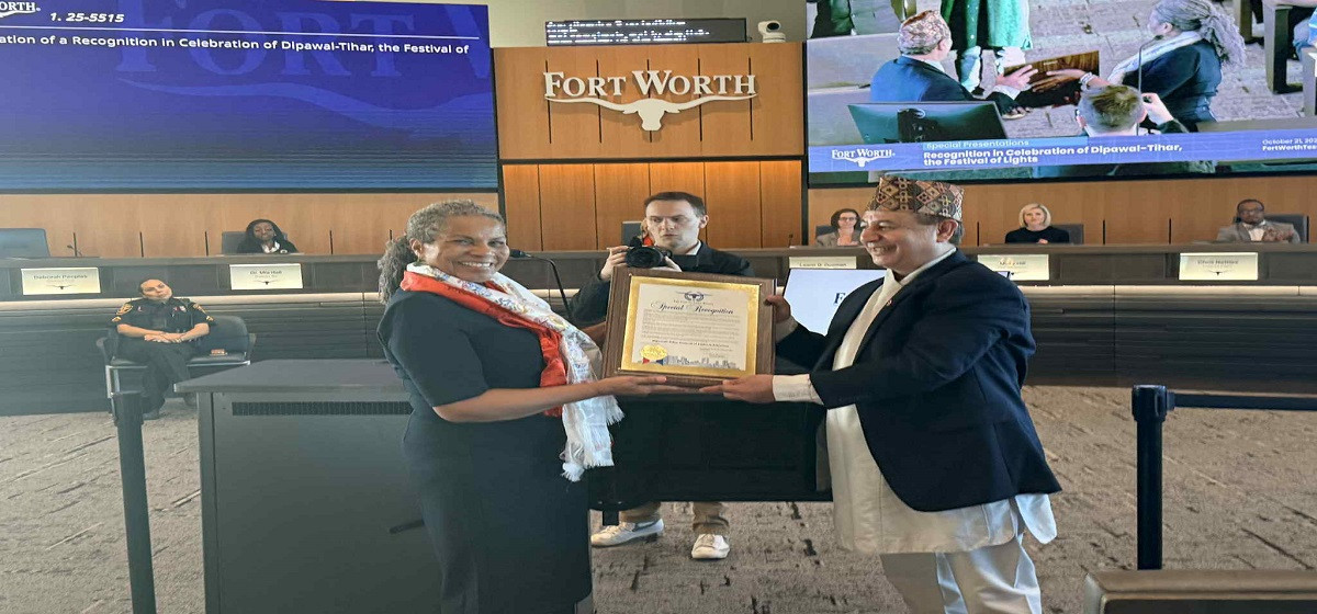 नेपालीहरूको दोस्रो ठूलो पर्व दिपावलीलाई अमेरिकाको टेक्सस राज्यस्थित फोर्ट वर्थ सिटीले विशेष मान्यता प्रदान गरेको छ। फोर्ट वर्थ सिटी काउन्सिलको मङ्गलबार बसेको नियमित बैठकले दिपावली पर्वलाई सिटीको विशेष सांस्कृतिक उत्सवका रूपमा मान्यता प्रदान गरेको जनाइएको छ।