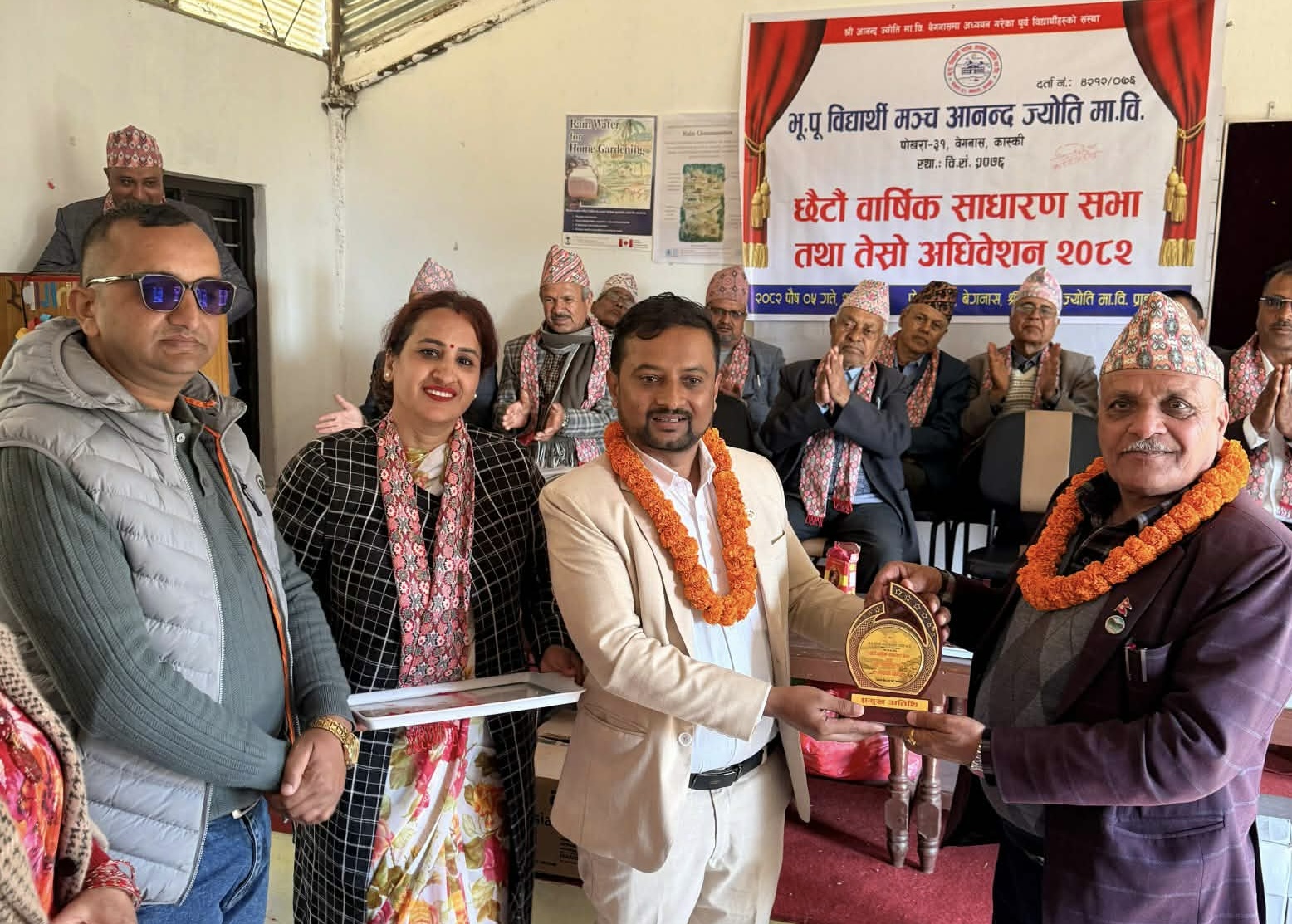 पोखरा महानगरपालिका वडा नं. ३१, बेगनासस्थित आनन्द ज्योति माध्यामिक विद्यालयको भूतपूर्व विद्यार्थी मञ्चको अध्यक्षमा सुशिला अधिकारी सिग्देल सर्वसम्मत निर्वाचित भएकी छिन् ।